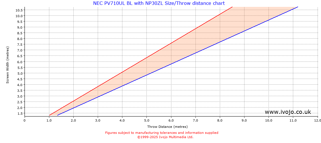 | Width | Height | Diagonal | Min. Throw | Max Throw | Area | Foot Lamberts* |