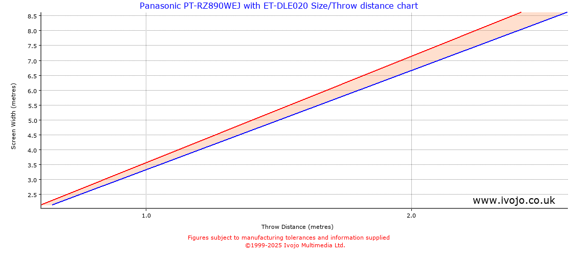 | Width | Height | Diagonal | Min. Throw | Max Throw | Area | Foot Lamberts* |